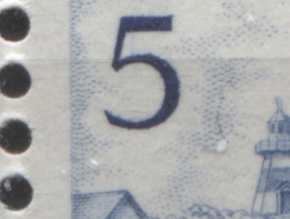 You have to look closely in the space between the top of the 5 and the top of the curved portion. However, if you look carefully, you can just make it out. But it is not nearly as obvious as the illustration in Unitrade would lead one to believe. So you have to check carefully when going through your 5c stamps. Also, it is critical to look in the right place: not within the curved portion of the "5", but in the space above it, but below the top of the "5".