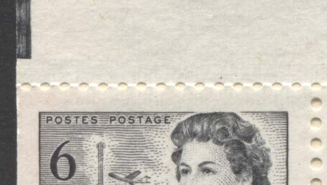 McCann notes in his catalogue that there are a large number of non-constant inking flaws to be found on all of these booklets. This post will not focus on these, but will identify the two constant flaws that are known on the 25c booklets, being the "airplane in sky" and "mole on forehead", which are found in the second stamp in the second row.