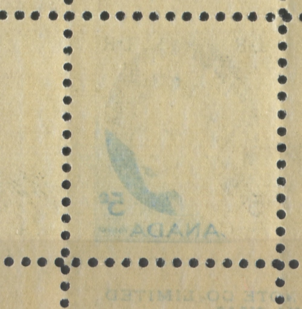 I really like this one. This variety shows a portion of the design printed on the back underneath the gum. I have seen other similar varieties offered for sale by Saskatoon Stamp Centre. But they are really uncommon, this being the first one I have ever seen personally.