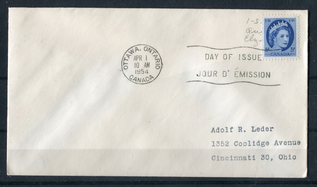 Quite frequently, you will see mixed frankings of this issue and the earlier Karsh Issue or the later Cameo issue, as the stamps of the definitive issues were often not replaced all at once. For example the current 50c stamp during this period was the 50c textile industry stamp of the Karsh Issue. The current 10c stamp did not replace the 1950 Fur Resources stamp until February 21 1955. Likewise the $1 totem pole stamp from the Karsh Issue was not replaced during the entire period of this issue.
