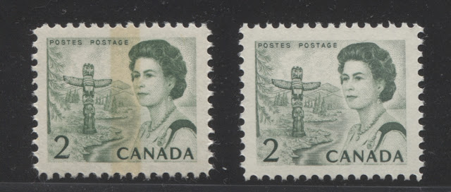 This type of ink seems to be found on both perforations of the BABN booklet stamps, and many of the CBN sheet stamps, with the deeper, duller browns, both untagged and Winnipeg tagged.