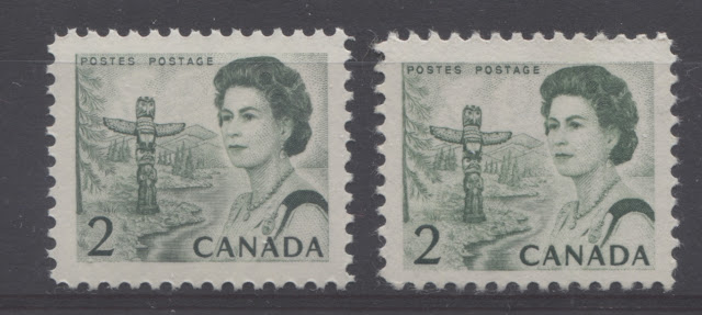 Today's post will delve into another aspect of the Centennial issue, that I feel has received less attention than it should: the printing inks. Apart from the fluorescent orange ink variety of the 6c orange, scarcely any attention is given in Unitrade to the immense variations in ink that can be found on this issue. In discussing the inks used, it is necessary to distinguish between how the inks will appear in normal light, and how they appear under ultraviolet light. In Canadian philately, the long-wave ultraviolet light (UV) is used to study modern issues, as it is this end of the spectrum to which the inks and tagging react the most. This is the safer wavelength of ultraviolet light as well, and is commonly referred to by laypeople as "black light". It is possible that two inks that appear the same in normal light or long wave ultraviolet light, might appear different under short-wave ultraviolet light. However, due to the dangerous nature of this type of light and the fact that it has not generally been in widespread us for Canadian stamps, I have not taken the study of inks in this direction. However, it may well be one worth exploring. What is certain, and will become apparent is that there are many, many instances where two stamps will have almost the same appearance under normal light, but whose inks will appear wildly different under UV light.