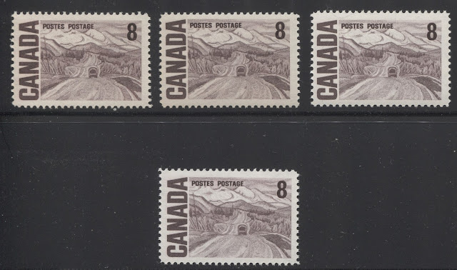 This concludes my examination of these four values. Next week, will be the last of my posts dealing with the shades as they appear in normal light. In that post, I will detail the shades found on the 20c, 25c, 50c and $1 values.