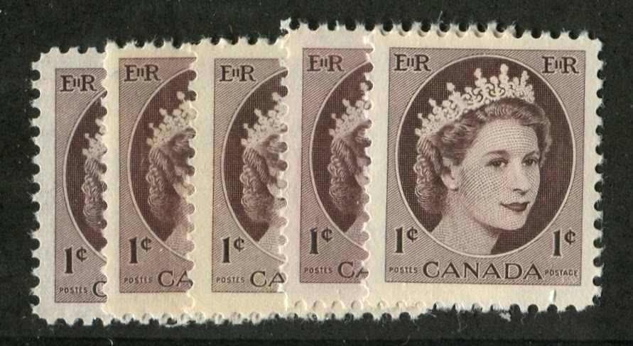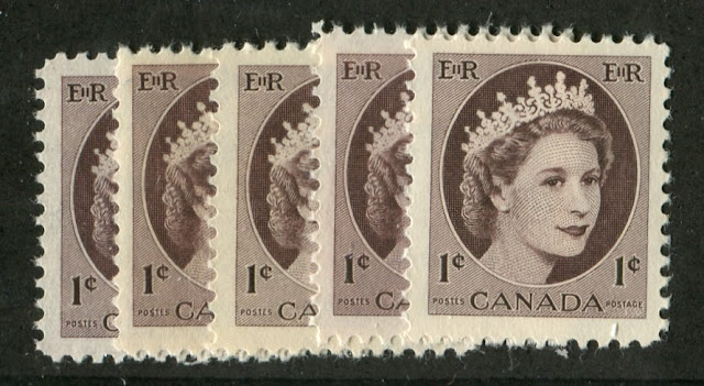 One thing that I did not comment on in the overview post for this issue is the perforation. From what I can see so far in working on the low values, the perforation for the low values did not vary at all, being 11.9 on all the stamps I have examined. I have not, as yet looked at the 10c, 20c and 25c values that were in use after 1963. I expect that as I study these, I will find at least some in the later perf. 12.15. I will definitely let everyone know what I find.