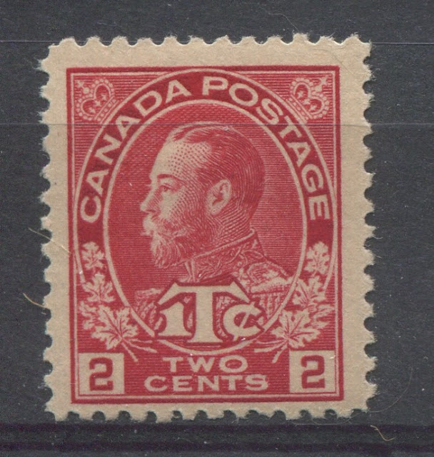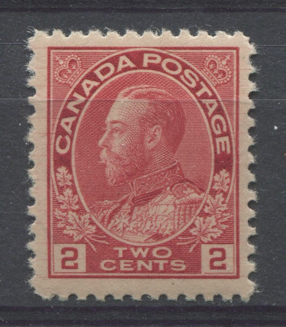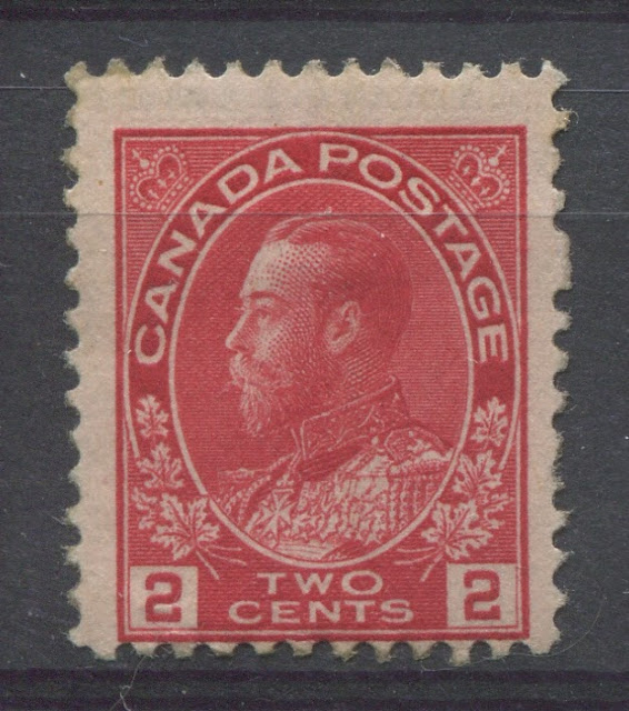 Of all the stamps in the 1911-1928 Admiral Issue, this stamp is the most complicated in terms of the number of shades that can be found. Unitrade makes some attempt to list the broader shade groups. However, as with all carmine or dark red stamps issued before and during World War I from just about any country you care to name, there are a tremendous number of shades. The main reason why there are so many has to do with the fact that the Commonwealth countries relied on Germany for their supply of red dies. When the war broke out in 1914, these supplies were interrupted and the printers were forced to improvise and find alternate sources of dyes. It was this improvisation that led to the largest range of shade varieties in philatelic history.