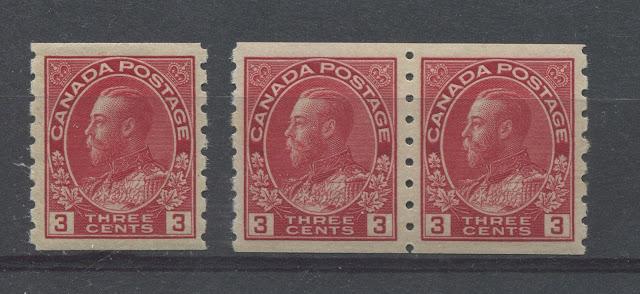 Now, finally let us conclude with the coil stamps perforated 8 vertically - the only format in which this stamp was issued as a coil stamp: