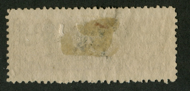 Some of the stamps can also be found with perforations running at weird angles. Don Waters, a member of one of my Facebook groups sent me this scan of a used 5c stamp in his collection: