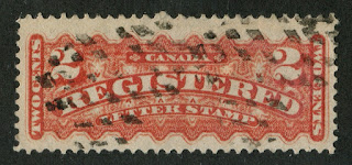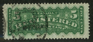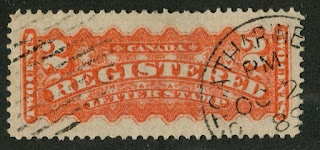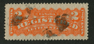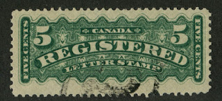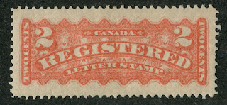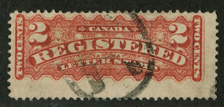 Weak and incomplete framelines along the top and bottom of the design occur frequently on the stamps of this issue, and are not that special. However, there are major re-entries to be found on both the 2c and 5c, both of which are valuable. On the 2c, the doubling affects the right "2", the right "two cents", "Red"of "registered", "amp"of "stamp", "ana" of "Canada" and the left "two cents". On the 5c, the "N"of "Canada", the "S" of "Registered", the "ER" of letter show distinct doubling. There are many more re-entries than just these. Ralph Trimble's website lists and illustrates all of the better known ones. You can access that site via the following link: