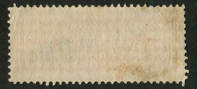 Many examples of this issue are found without gum. I'm not sure why this is, but it is important to watch for regummed stamps. These can be identified by having the wrong type of gum (i.e. colourless and shiny), or by the presence of gum on the very fine microfibres of the perforation tips, where there should not be any gum.