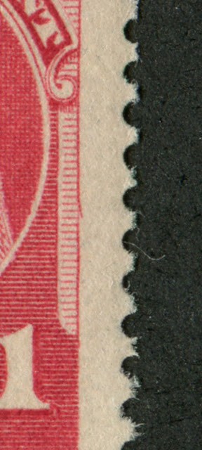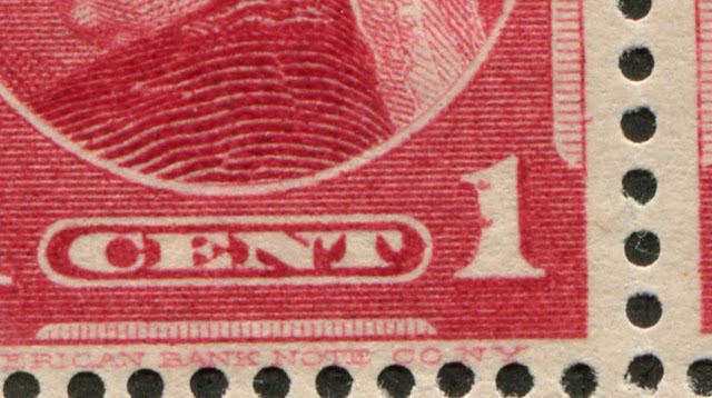 The papers on this issue usually measure between 0.0035-0.0045” thick on the gummed mint stamps and between 0.003-0.0035” on the unused or used stamps. Unitrade does list an expensive thick paper variety on the 1c carmine rose, but unfortunately does not specify what the actual thickness is. However, based on what I have observed with the stamps I have worked with, I would guess that any paper over 0.0045” thick on a mint stamp could be classified as “thick paper”.