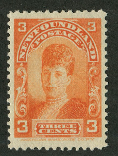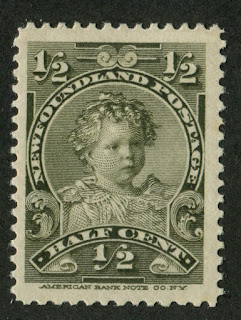 One of the things that is interesting about this set is that it portrays members of the royal family long before they were commonly seen on stamps, and at unusual ages. For example, the 1/2c olive, is to my knowledge, the only stamp in the entire Empire that shows the future King Edward VII as a baby. Queen Alexandra (Edward VII's wife) does not appear on very many stamps at all. In fact I can't think of a single Commonwealth country other than Newfoundland and Canada that show her portrait. Canada only shows her on the 2c Quebec Tercentenary. The 4c and 5c show the future Queen Mary and King George V a good 12 years before George V became king, and again to the best of my knowledge, Mary only appears on Canadian and Newfoundland stamps.