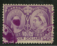 $4 dull purple - again fading likely affects the shade on this stamp