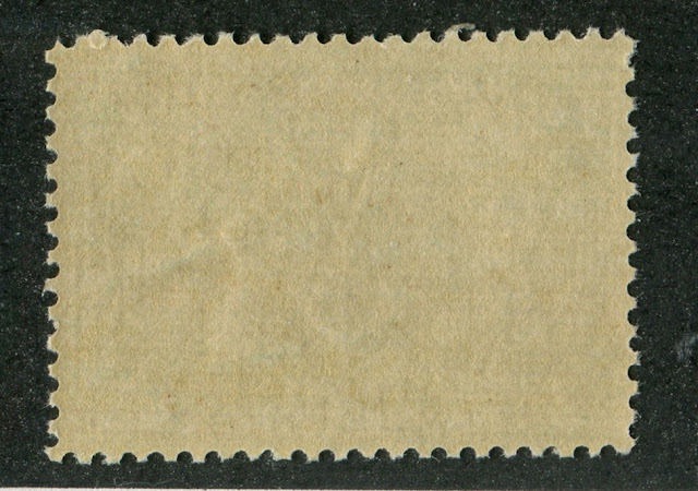 It is hard to see the difference between these two scans, but the gum on the top stamp is creamy, smooth and has a satin-like sheen to it. In other words, it is not very shiny, but it is not dull or matte either. The gum on the second stamp has a semi-gloss sheen - moderately shiny, but not extremely so. In both cases, the gum has a creamy, very light coffee with cream tone to it.