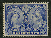 Canada's contribution to this was the Diamond Jubilee Issue, released on June 19, 1897. It consisted of 16 stamps, identical in design and with denominations ranging from half a cent to five dollars: