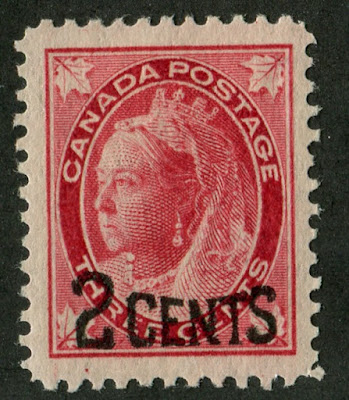 Unitrade makes no distinction between these, calling all the stamps simply "carmine". I'm sure that the above list is by no means exhaustive and that there are other shades besides what I have listed there. Some of them are clearly more common than others, as I have indicated in parentheses. A study aimed at establishing the relative scarcity of the shades could be a very rewarding study project.