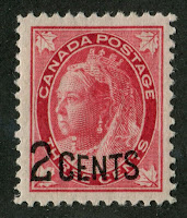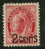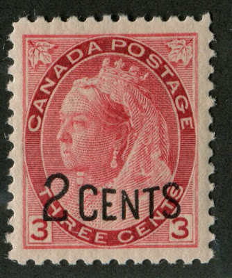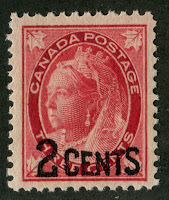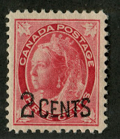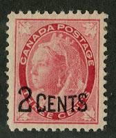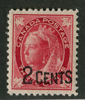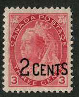 Within just under 2 weeks, the 2c carmine Numeral was issued and so the need for these stamps had ended. Consequently, just 1,375,000 of these stamps were overprinted. It is thus very strange that this stamp is valued at just over half of the Numeral stamp (in fine and very fine mint anyway), since there were just over half as many stamps issued. In used condition it is worth more, as it should be.
