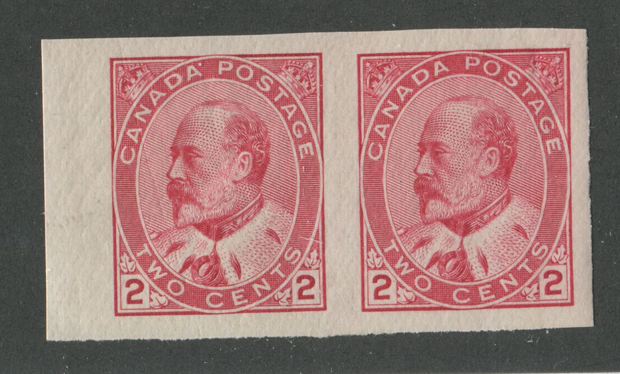 The above pair is an example of such an experimental item which was produced by taking an imperforate pair, cutting V shaped notches in the sides between the stamps and perforating between the stamps. The notches were intended to allow the machines to advance the stamps and also provide a way to separate the stamps without tearing them. Ultimately there would be more experiments in the Admiral issue and none of the experimental formats in this issue were ultimately adopted. But they are an important aspect to this issue and are in demand from coil specialists as they are the forerunners to all Canadian coil stamps.