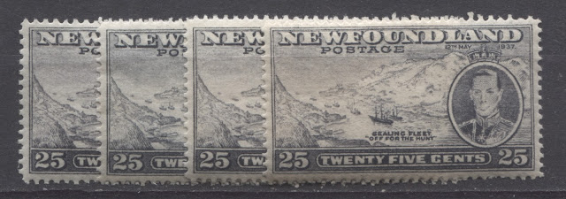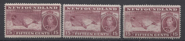 For the collector interested in perforation varieties, this set is a fantastic choice because at least four different perforations are found on all eleven values, and there are several more to be found on several values as well. Some of these are very scarce and easily overlooked if you are not paying very close attention and using an accurate instanta gauge. Most of these are not too expensive, but two of them are expensive, and one, the comb perforation of the 14c black, is one of the rarest stamps of Newfoundland and in all of King George VI philately.