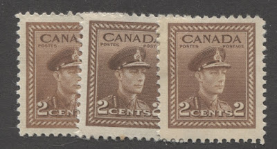 In the scan above of the 1c stamps, you can see some of the variations in the colour of the paper that are found.