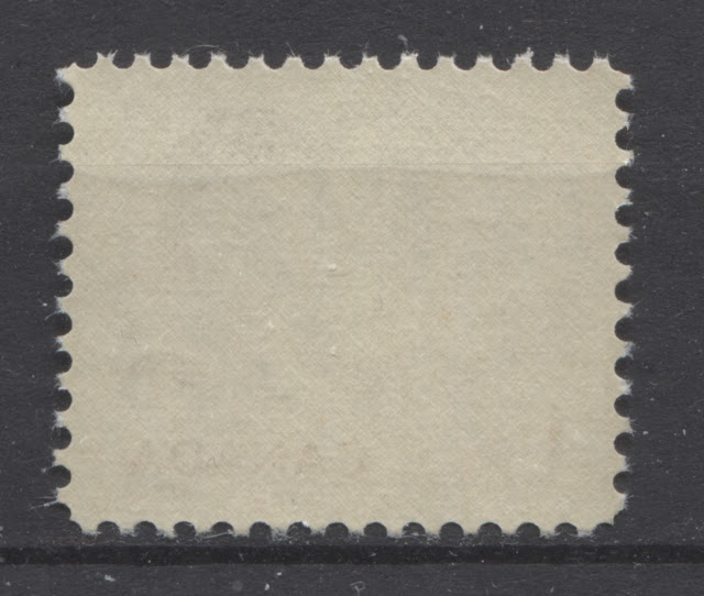There are four types of paper that I have found on this stamp: two that most closely fit Unitrade's definition of NF and two that fit Unitrade's definition of DF. As with the Winnipeg centre bar stamp, the paper has a highly finished surface and is vertical wove. Again, there is sometimes very weak horizontal ribbing visible on the back, but not usually. In normal light, all of the papers have a creamy off-white appearance.