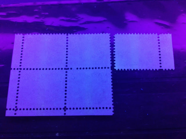 If you are unsure of whether a stamp or block has streaky or smooth gum, look at the gum under UV light. If it is streaky, the streaks will show up very clearly.