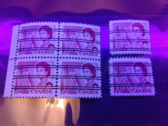 The pictures below show how the shades of these stamps vary under UV light: