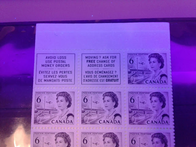 Some of the booklets issued had 4 mm OP-4 tagging that glowed light green as shown in the picture above.