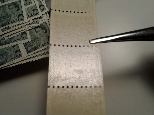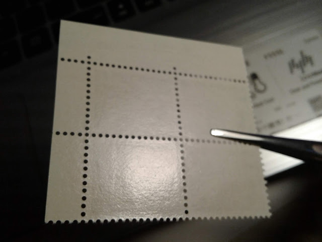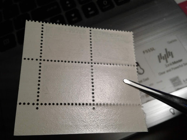 Here, the wide spacing is between the middle stamps, where the spacing is 4.5 mm compared with the normal 4.0 mm.