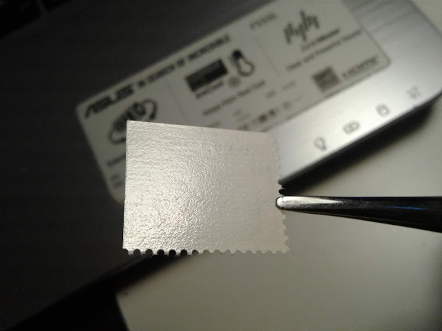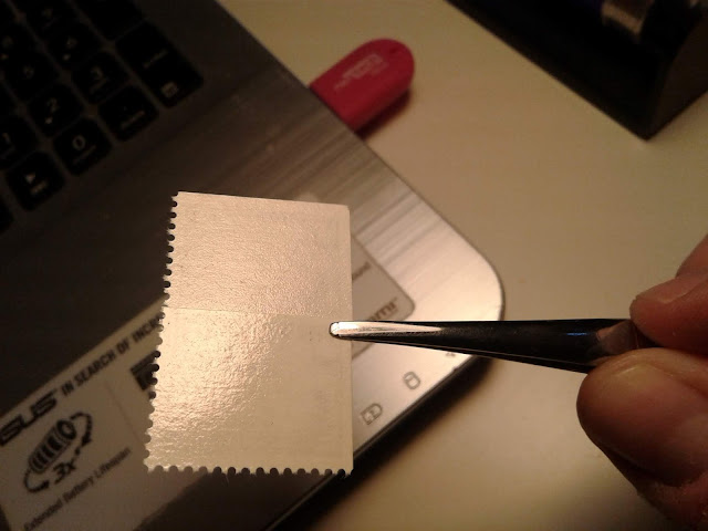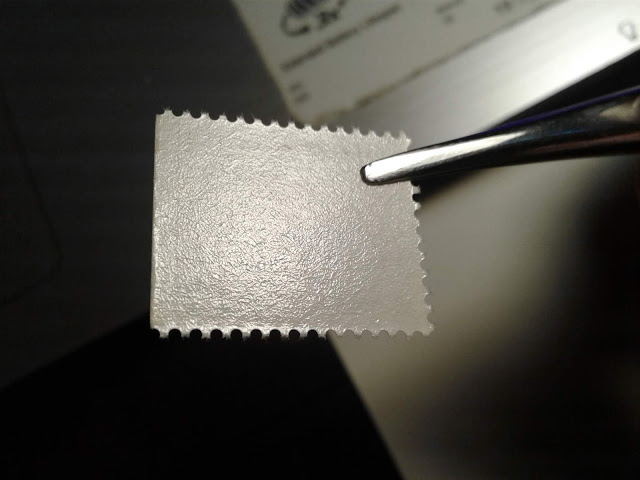 The next picture below shows a comparison between this stamp and the first paper type when viewed against strong back lighting: