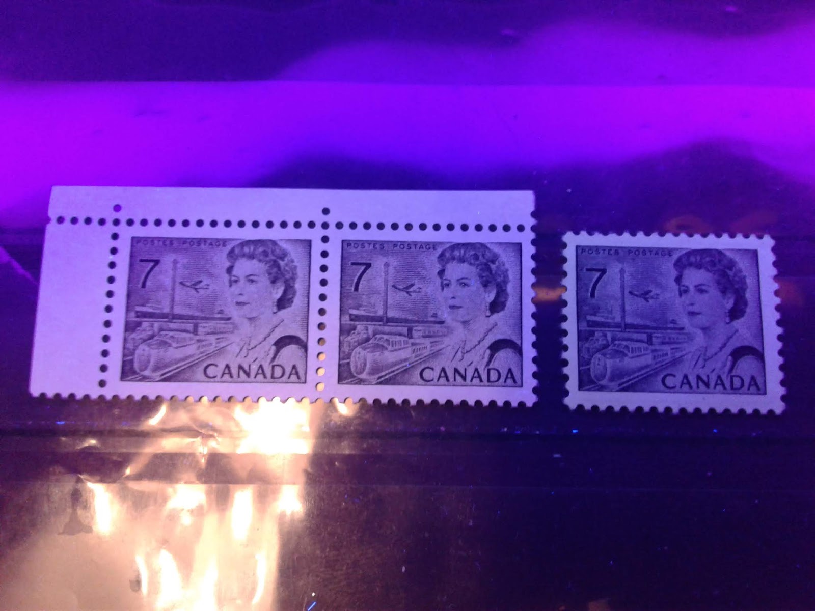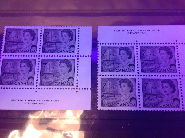 The stamp on the left is the high fluorescent paper, while the one on the right is a true hibrite paper.