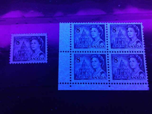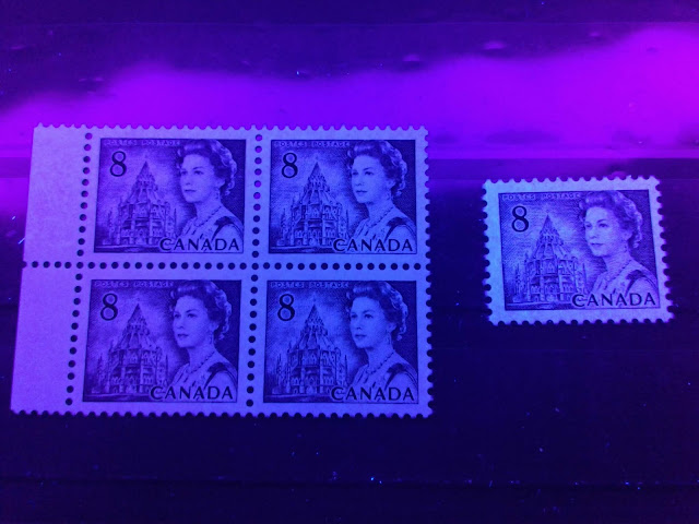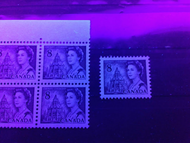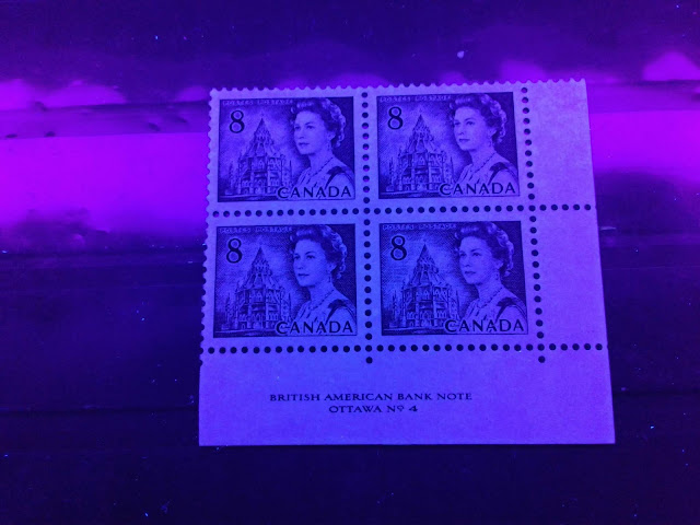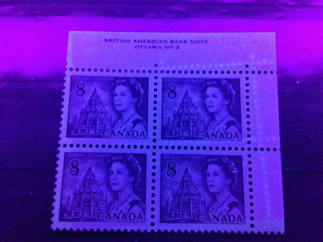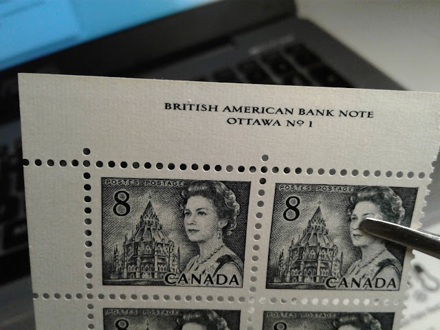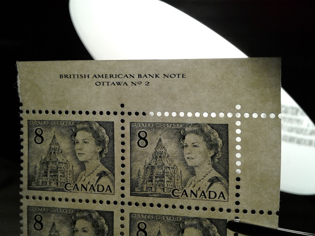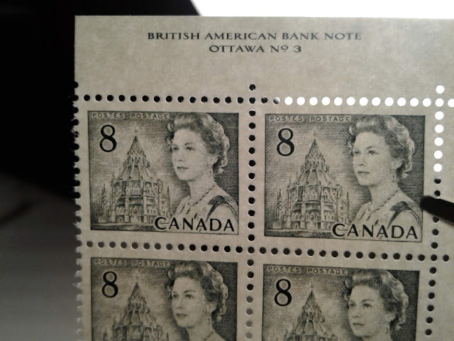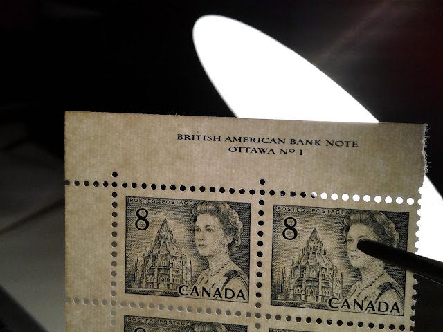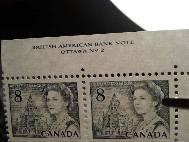 This concludes my first part of the exploration of the 8c Parilamentary Library stamp. Next week, I will examine the Winnipeg tagged sheet stamps.