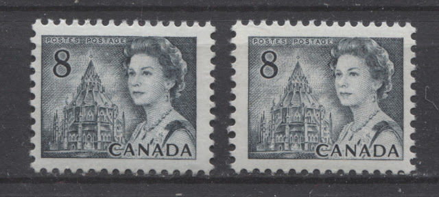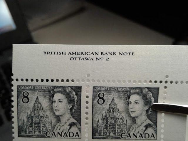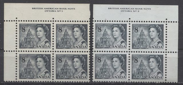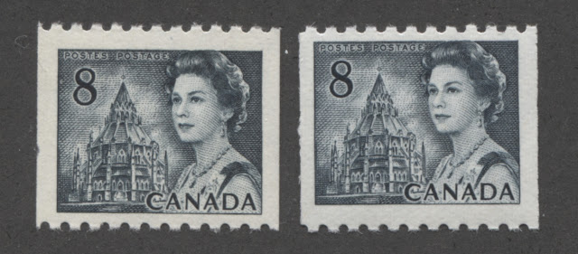 Today's post will explore the untagged sheet stamps and the untagged coil stamps. Next week, I will look at the Winnipeg tagged sheet stamps. The following week, the General Ottawa Tagged sheet and coil stamps, and then the following week after that, I will look at the booklet stamps. This last post will repeat much of the same material as the earlier posts about the 1c, and 6c booklet stamps, as the 8c booklet stamps came from the same booklets as these other stamps. The 8c and 7c denominations were the only first class rate denominations that were not issued in large booklets containing only that value.