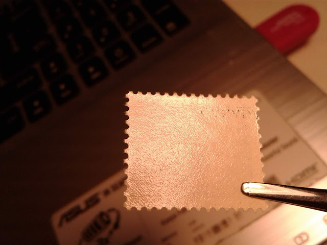 - A smooth, cream coloured PVA gum that has an eggshell sheen, that is noticeably matte compared to the satin sheen. This is the more common gum and seems to have been used for most of the fluorescent paper printings.