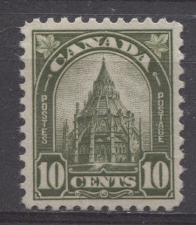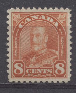It is also the only issue to feature both die types and colour changes in all values to the 8c, except the 3c and 4c. As we will see, the values up to the 8c were all replaced by the Medallion issue by December 1932. However, the higher values being the 20c, 50c and $1 were not replaced until the Dated Die Issue appeared on June 1, 1935. The 10c was replaced by a different design bearing a portrait of Sir Georges Etienne Cartier and used until June 1, 1935. This will be dealt with in a separate post dealing with the 1931 provisional surcharges. This series of two posts will concentrate on the regular issue postage stamps, the airmail issue and special delivery issues. Herman Herbert Schwartz was the designer of the set, while the King George V portrait was engraved by Carl Theodore Arlt. All values to the 10c were printed in sheets of 100, while the high values were printed in sheets of 200 that were guillotined into four panes of 50. Plate 3 of the 8c red-orange was printed in sheets of 400 that were then guillotined into four panes of 100.