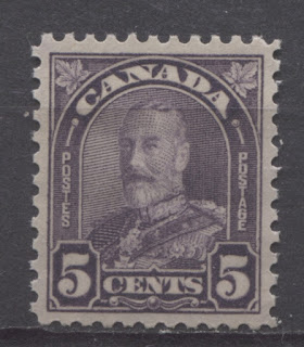 This period is also, in my opinion, the most neglected in all of early modern Canadian philately. Unitrade does list a few shade varieties, and a few plate flaws, but careful study of the stamps issued during this five year period will reveal that there were many shade varieties as well as highly discernible paper and gum variations. Finally, due to the colour changes, some of the stamps in this set like the 1c orange, 5c violet and 8c dark blue have very short periods of use, making them excellent candidates for in-period postmark collections.