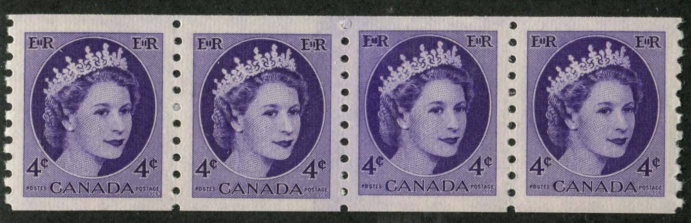 The coil stamps are another very complicated aspect of this set. As explained in the post dealing with the Karsh Issue, the following varieties exist with all Canadian coil issues: