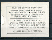 The are the inside front and back covers of the 25c red booklets. The 25c blue booklet has a similar back cover, but instead of two pointers, only the first one, "Speed your mail...." is statedin both English and French.