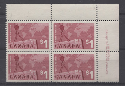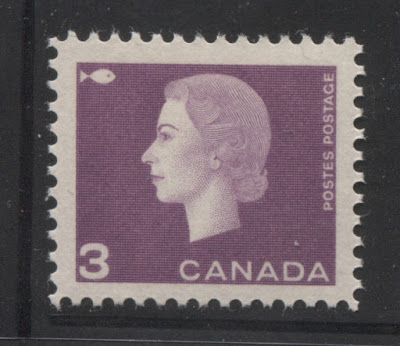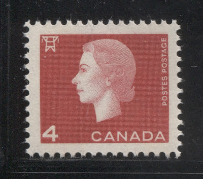 Julian Goldberg, a Toronto philatelist has studied the perforations of modern Canadian stamps for quite some time and recently discovered that in 1962, the Canadian Bank Note Company adopted new perforating equipment that had a slightly different gauge from what had been used up to this point. Sometime between 1956 and 1958 the gauge was changed from exactly 12.0, to 11.95 - a very small change, but one that can nonetheless be accurately detected with a good Instanta perforation gauge. Then in 1962, the gauge was changed again to 11.85. I have found several stamps showing perf. 11.95, perf. 11.85, perf 11.85 x 11.95 and perf. 11.95 x 11.85. I will detail the various varieties that I have seen thus far in a separate post. However, suffice to say that the existence of these variations does mean that there could be up to 4 different varieties of every stamp, until the new equipment had been fully phased-in and all stamps were only perf. 11.85.