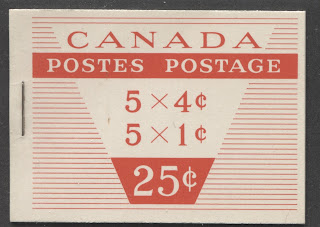 This was one of the last issues to feature stapled booklets, with the 1967 Centennial issue being the very last one. The issue featured just two 25c booklets that had a cover design which was identical to the one that had been introduced in the last printings of the earlier Wilding issue. Up to four different types of each of these two booklets are known, which differ according to small details found on the front covers. The panes themselves also exhibit a number of paper varieties, which further adds complexity to the collection of booklets from this issue. I will detail the various types that can be found in a separate post over the coming weeks.