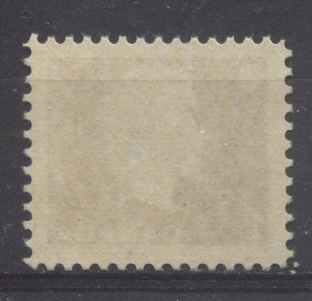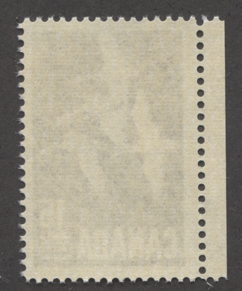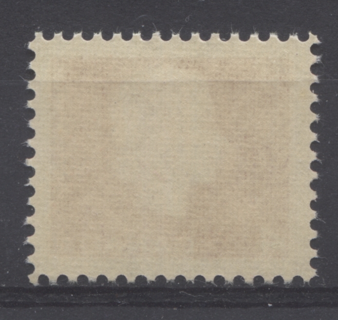 This scan shows the second type of paper on which this stamp is found. This paper is a horizontal wove paper that shows very faint, but visible vertical mesh on the gum side. The colour in normal light is off white also. Under a 10x loupe, the surface of the paper is smooth, but much more porous than the other paper. The gum is cream colour, often shows intermittent horizontal streaks and has a semi-gloss sheen. Under ultraviolet light, this paper usually gives a dull fluorescent greyish reaction.