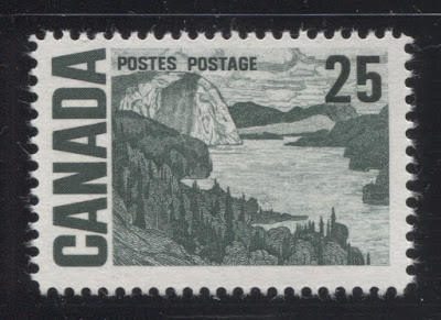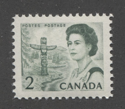 Today marks the first in a series of many posts about what has become not only one of the most popular definitive issues for Canadian specialists, but in the world. It is on a par with the Machin Heads of the United Kingdom, in terms of complexity, for the six years that it was current. The Machin Heads are of course, much more extensive, having been in continuous use for 50 years now, but the Centennial Issue is remarkably complex for a series that lasted for only six years. Five to six years is the average life span of a modern definitive issue, but usually most definitive issues that run this long do not yield anywhere near the number of collectible varieties that this one does. This is one of those issues that you can collect for 40 years, and think at the end of that time that you know it inside and out, and just when you think you have discovered all that there is to discover, another aspect that you either didn't consider to be significant, or just didn't notice will surface.