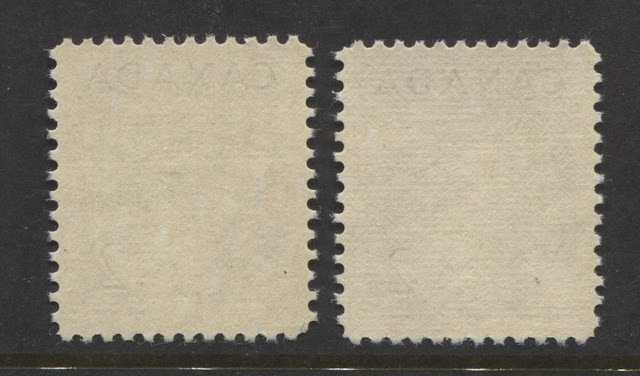During this period, stamp paper is generally non-fluorescent or dull fluorescent. Unitrade lists no paper varieties whatsoever for any of these stamps. However, it is possible to find subtle variations in the appearance of the paper under long-wave ultraviolet light: