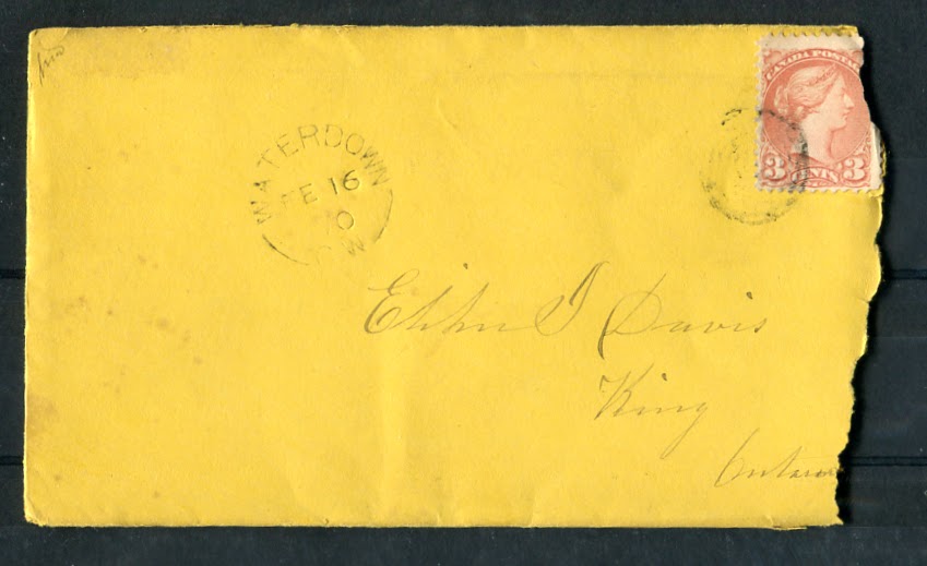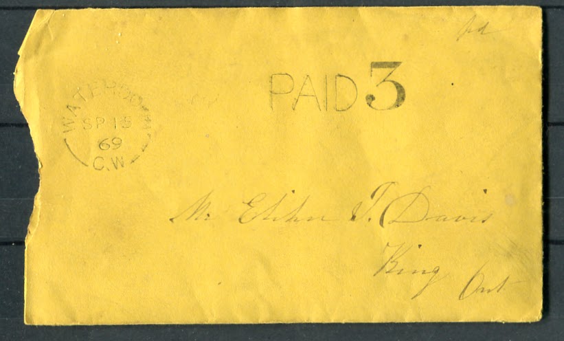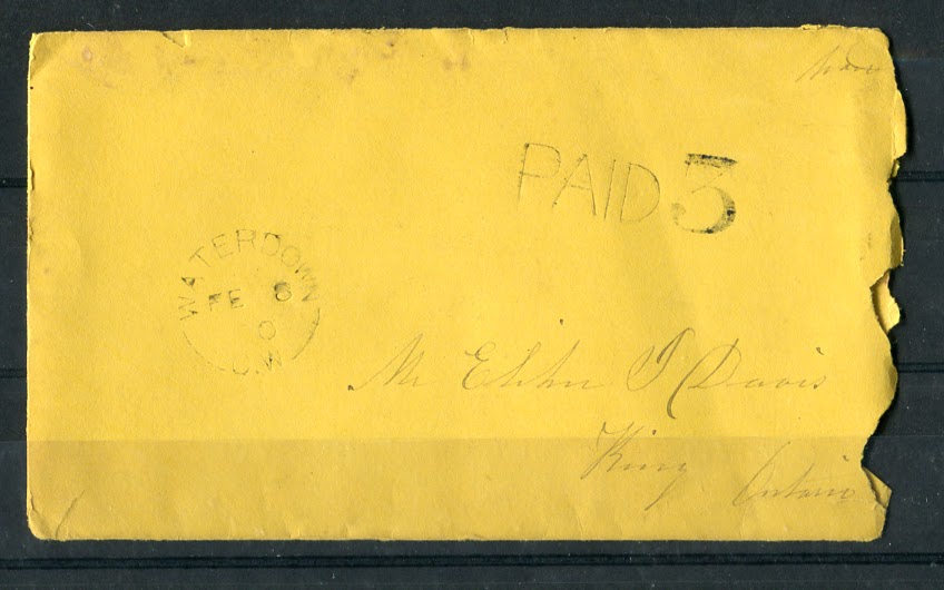 I became interested to try and find out who the Davis family was and whether or not they were prominent Ontarians. Clearly the person sending the letter, E. Davis was a person of means because the last three of these letters were all sent a week apart and 3 cents back then was not a small sum. In addition the paper that the letters were written on is of very high quality. I googled Extra Superfine writing paper and found that it is manufactured by the Hampshire Paper Company in Nashua, NH to this day.