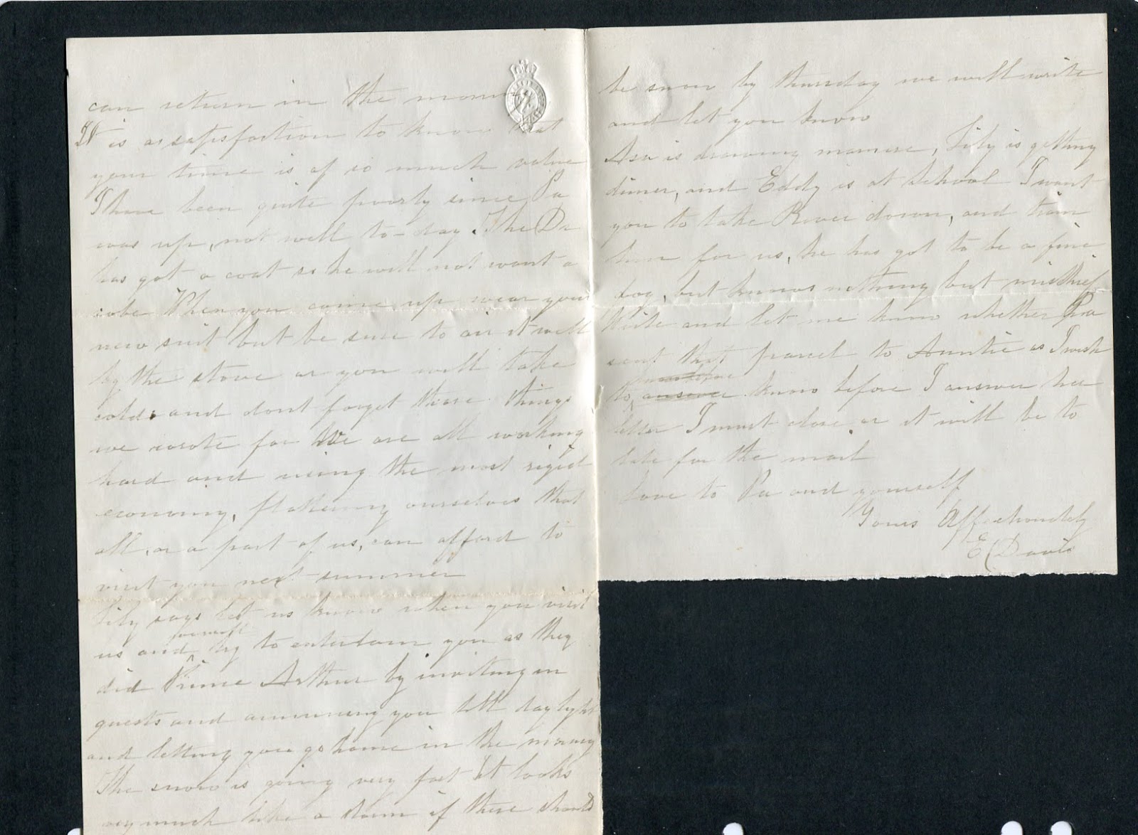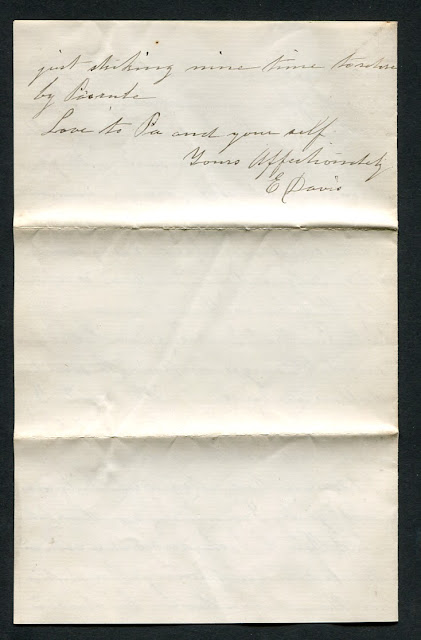 I started googling the Davis Family in Ontario and noted that in the 1800's there was an Andrew Davis who owned a leather tannery business in Kingston, so I figured there was probably some relation. I couldn't for the life of me make out the name of the recipient - it looked kind of like Elizabeth, but the letters were wrong. So I put them all aside for a few weeks and worked on the rest of my material.