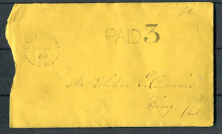 As far as basic covers go, not much to write home about at all:common stampless covers with a common "paid 3" marking and one 3c dull red Small Queen with the stamp torn in half!
