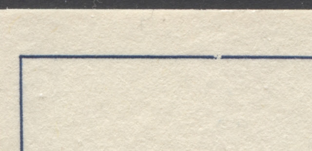 These panes are found on dead paper that is generally either a deep violet, or deep brown under UV light. They are also found on dull paper, and on dull paper with low and medium fluorescent fibres. They can be found with a guide-line between the top two stamps on the left side (1/1 and 2/1), and with a round corner on the second stamp from the top on the left side (2/1). Of course, both these varieties can be found on all of the three main types of paper on which these booklets are found.