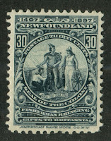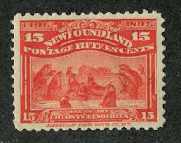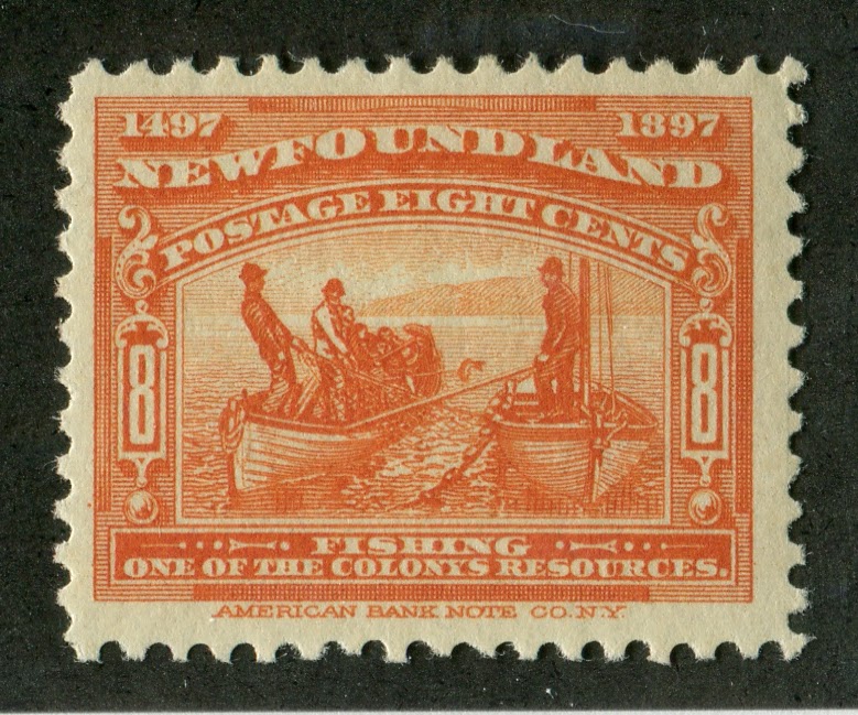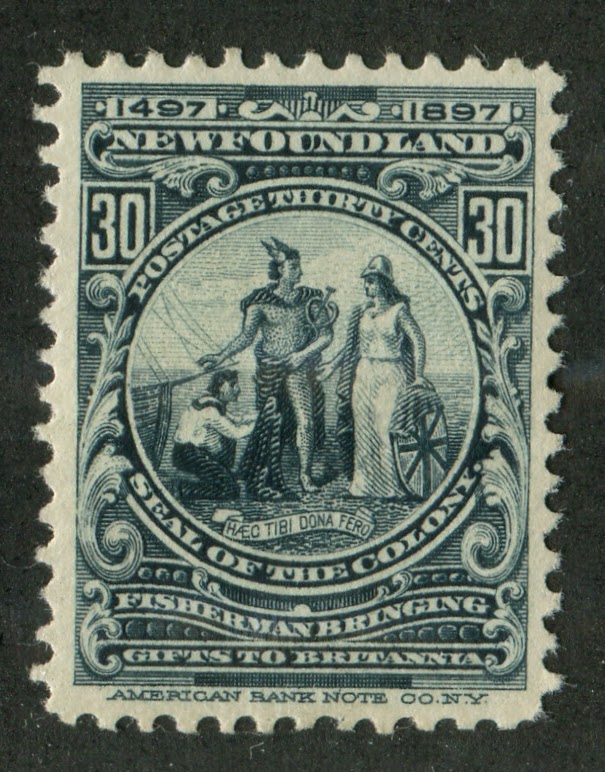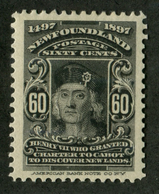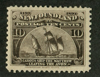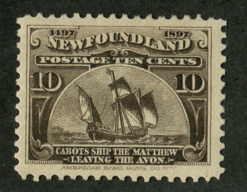 John Cabot was the explorer who discovered Newfoundland. This set was issued on June 24, 1897 to commemorate the discovery. A pristine mint set retails for just over $400, which is a mere pittance compared to what other long commemorative sets from this period typically sell for. The set was printed by the American Bank Note Company and interestingly, rather than place their imprint in the margins of the sheets, they engraved them right onto the individual subjects of the plate in the bottom margins.