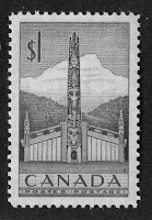The first stamps of the series to appear are the 7c, which was issued on November 1, 1952, the 20c paper industry, which was issued on April 1, 1952, and the $1 totem pole, which was issued February 2, 1953. The next 7c stamp to appear was the 7c jet plane definitive, which was issued on March 11, 1964. The next 20c, was the green paper industry definitive, which was issued June 7, 1956. The S1 was replaced by the Exports design on June 14, 1963. Thus the period of use for these two stamps is: