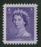 The low value definitive sheet stamps all appeared on May 1, 1953. However, the booklet stamps did not appear on this date, nor did the coils. The first booklet to be issued was the 4c pane of 6 on July 6, and then the 2 panes of 4 of the 3c on July 17. The chewing-gum booklet of the 1c, 3c and 4c did not appear until August 12. The 5c Wilding definitive appeared on April 1, 1954, with the other values appearing on June 10, 1954. The Wilding booklets containing the panes of the 1c and 4c were issued January 1, 1956, while the 5c booklets came out on July 14, 1954. Thus the periods of use for the sheet and booklet stamps are thus: