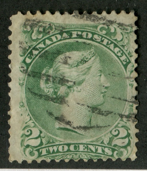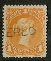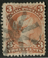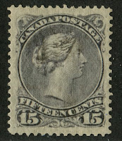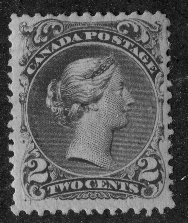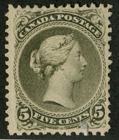 Following Confederation it became necessary to prepare a new issue of stamps which would replace the issues of The Province of Canada, New Brunswick and Nova Scotia. British Columbia would continue to use its own stamps until it joined Confederation in 1871, and of course Newfoundland would join in 1949.The contract to print the stamps went to the British American Bank Note Company of Montreal and Ottawa. The basic design for all the values in the series was the young Queen Victoria facing right, which was based on the famous engraving by Charles Henry Jeens. The actual engraving of the portrait was the work of Alfred Jones, while the frames and lettering were engraved by Henry Earle Sr. The frames varied slightly on each denomination, but consisted of beautifully ornate scrolls in the corners and foliate ornaments within which were the words "Canada Postage" and then the demination expressed in both words and numerals.